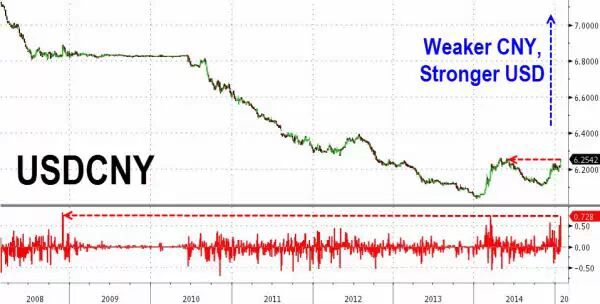 周五的中间价下调被市场理解为央行默许人民币下跌的信号。