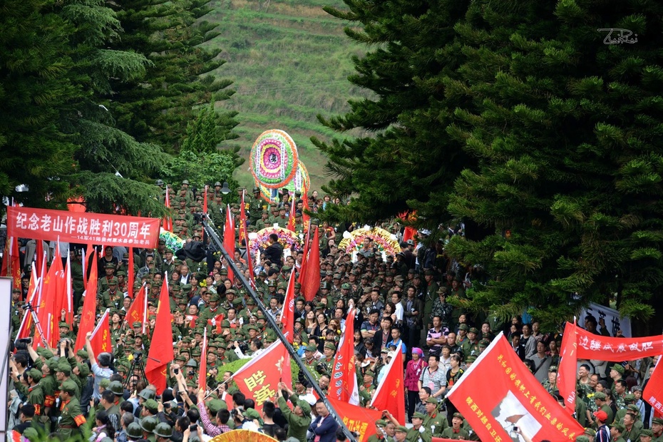 老山,位于中国云南省麻栗坡县,与越南接壤,是重要的军事要地。推荐关注微信查找“老兵微刊”1979年中越自卫反击战后,穷兵黩武的越南当局利用我撤兵时机,占领了以前双方从没有驻兵防守的老山、八里河东山等边境奇线山峰,并修建了许多永久的防御工事,在我天宝橡胶园和许多农田中密布了大量地雷,同时不断向我边防军民开枪开炮,严重侵犯了我国领土完整和民族尊严,破坏了边境军民的生产生活。 收复老山战斗打的十分激烈和残忍,数千名年轻的中国军人“当祖国发出战斗的号令之后,我们就冒着硝烟与敌人博斗”,他们冲击硝烟,滚进雷区,纵然鲜血染红了衣衫,也要射出最后一发带血的子弹,用鲜血和生命谱写了一曲气壮山河的凯歌,涌现出了史光柱等一大批英雄人物,然而张大权等295名战友却永远的长眠在那片浸透了鲜血的红土地······ 老山之战,对长达10年之久的中越战争,具有里程碑式的意义。收复老山之后,南京军区、济南军区、兰州军区、北京军区都分别在老山战场轮战,裸体作战军人堪称战争奇迹。 想当年,老山战场的风吹草动都紧紧连着中南海的心,胡耀邦总书记“国威军威看西南”的题词表达着党中央对前线将士的殷切期待和鼓励,每天的报纸和电波无时不关注着前线的一举一动,每年的春节联欢晚会上都有对前线将士的问候和祝福······ 想当年,老山英雄红遍神州,一波又一波老山英模报告团让亿万民众热血奔流,老山军人“亏了我一个,幸福十亿人”的精神响彻全国,称赞老山军人“新一代最可爱的人”的呼喊此起彼伏,“血染的风采”唱遍全国······ 硝烟散尽,祖国安宁,可谁还记得今天的和平是英雄用鲜血和生命换来?谁还知晓当年的英雄姓名?谁还记得为了和平牺牲在中越战争中那2700多名年轻的生命? “我无法忘记!”收复老山战斗主攻营的营长藏雷老英雄来了。 “我们无法忘记!!!”上万参战老兵千里迢迢从全国各地涌向了麻栗坡烈士陵园。 4月28日,参战老兵自发组织这次纪念收复老山30周年暨祭奠英烈活动,其规模、庄重史无前例,无数场景感人肺腑,催人泪下,发人敬醒,对时代、对社会有很强的教育意义,我多么期待能够从主流媒体上看到关于这场活动的片言只语,一个镜头,然而我失望了。在这个具有特别意义的日子,在上万老兵自发祭奠英烈的时刻,曾经为了采访参战将士当做十分荣耀的记者们集体失声了······ 但愿有更多的人能够看到此博客,感受参战老兵此时此刻的情感。 参加纪念活动的参战老兵和烈士亲属 虽然年过半百,老英雄们英姿不减当年 共和国的旗帜上有我们血染的风采 无尽人流此刻汇聚成思念的长河 愿鲜红的玫瑰让您也体味爱情的温柔 花圈上饱含生死战友的思念 也代表着我们对战友深切的缅怀 长眠在南疆30年的战友们,我们看您来了 亲人呀,30年了你为什么还不回家看看 孩子呀,想起你父母怎么不心酸 祖国富裕了,你们也不要忒寒酸 八一军旗下,老兵们依然是热心男子汉 即使化作了祖国的山脉,也要永远守护人民的安宁 老山主攻营营长藏雷为烈士敬酒 再喝一口醇香的茅台酒 再叙一段生死战友情 军礼,献给长眠的战友 鞠躬悼念牺牲的兄弟 不能忘记您呀,为我挡住子弹的兄弟 睡梦中常常泪水浸透枕巾