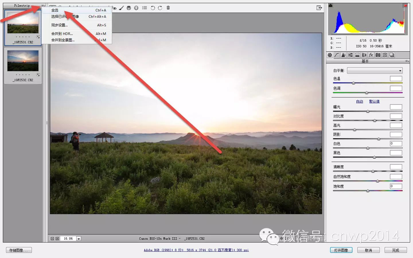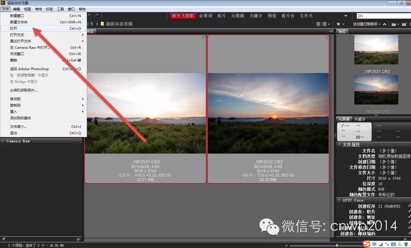 HDR(High Dynamic Range Imaging,简称HDRI或HDR,高动态范围成像)是用来实现比普通数字图像技术更大曝光动态范围(更大的明暗差别)的技术。HDR的目的是正确记录从最亮到最暗这样大范围的亮度,让你的照片高光和阴影部分细节都清晰,使得照片的效果尽量接近人眼观看的效果。 在拍摄对象为大光比的情况下,在超出相机动态范围的情况下,直接用相机的HDR功能进行拍摄,最终效果有时候不能令人满意,因此,我们经常采用对亮部和暗部分别测光的方法拍摄,后期中在PS中用蒙版进行合并,获得理想的图片效果。从ACR9.0版本开始,增加了“合并到HDR”功能,可以把分区测光拍摄的素材方便的合并为DNG格式的文件,而且合并前的素材和合并后的结果都可以在ACR中进行调整,从而得到满意的效果。下面,我把用ACR进行HDR图片合并的流程进行介绍。