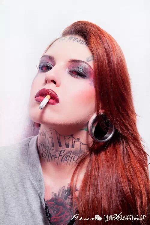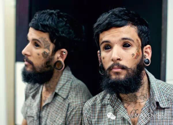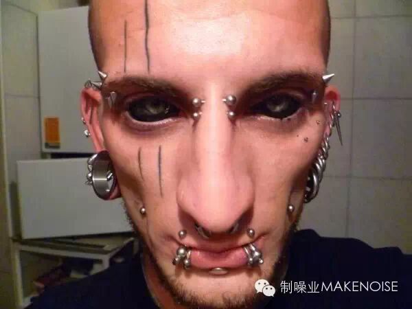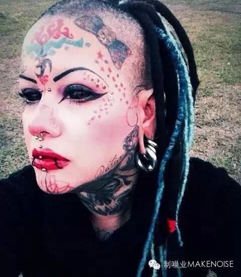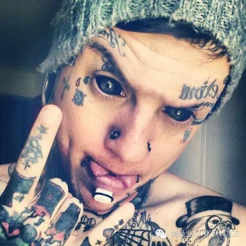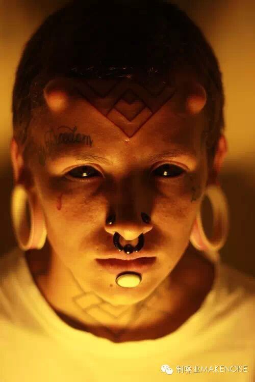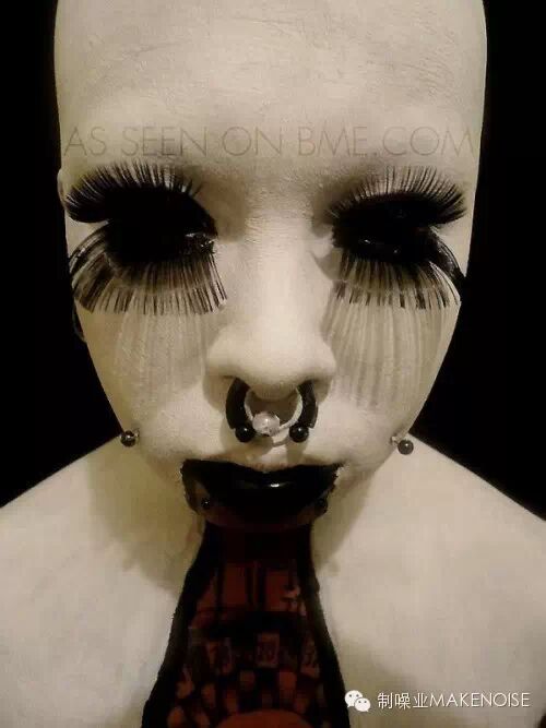 ▲ 经典全黑眼珠纹身,适合头上多角多钉的造型