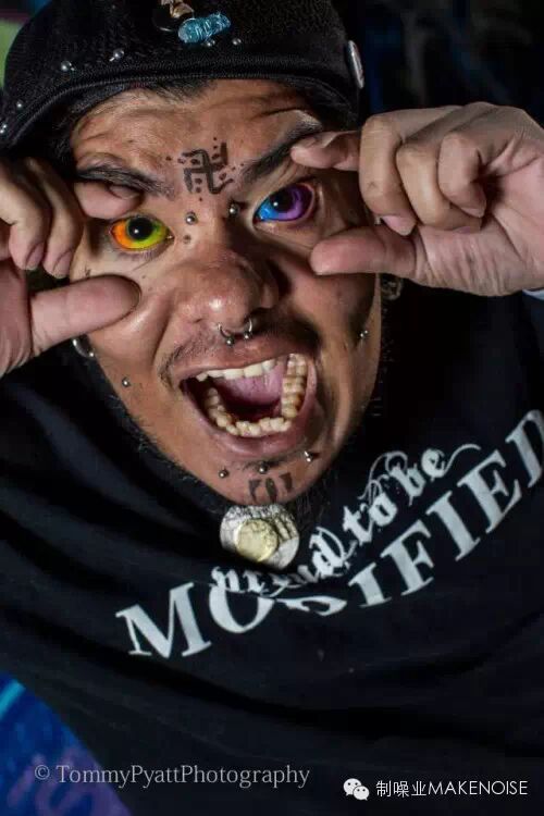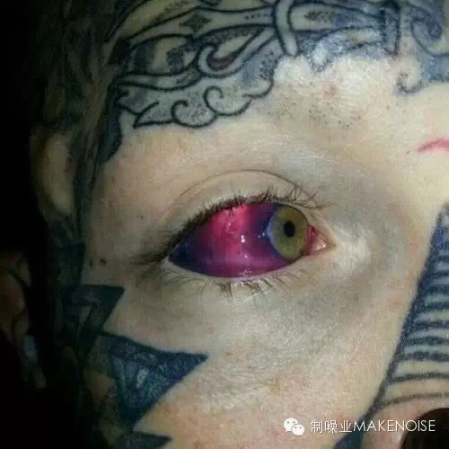 地球上第一个主动要玩眼球纹身的人则是一位加拿大的骚年,他的眼球被针头刺入 40 多次,终于将眼球染成了蓝色!这种特殊的蓝墨水中混合有抗生素眼药水,以防眼睛在 “纹身” 后发生感染。